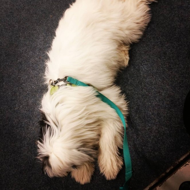 Maanantain tunnilla treenattiin luoksetuloa ja paikallaoloa. Pysymistreenit istumasta on aloitettu ja Tellu osaa istua paikallaan, kun otan askeleen pois ja kävelen sen edessä ihan lyhyellä etäisyydellä. Sillä alkaa selvästi olla ideaa, mitä “istu” tarkoittaa. Luoksetulossa sillä on kova vauhti, sitä treenattiin niin, että pidettiin kiinni, koska se ei vielä osaa jäädä odottamaan. Tellu myös miellään hyppää päin niinkuin muutkin koirani, sen kohdalla aion nyt alusta asti puuttua hyppymisiin, jotta siitä ei tulisi ongelmaa. Paikallaoloharjoituksessa palkkasin Tellua kontaktista käskyttämisen aikana ja ihan pieneltä matkalta istumassa pysymisestä. Sille aion opettaa molemmat samaan aikaan, jottei luoda samaa ongelmaa kuin Susun kanssa. Maahanmenoa en ole vielä opettanut, koska haluan, että sen lihaskunto ja kehonhallinta kehittyy lisää ensin.