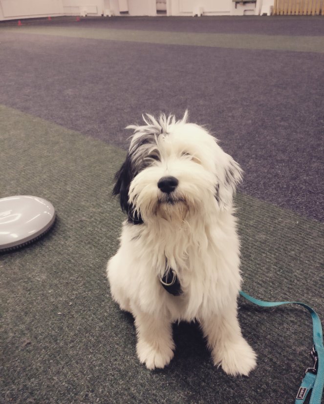 Maanantain tunnilla treenattiin luoksetuloa ja paikallaoloa. Pysymistreenit istumasta on aloitettu ja Tellu osaa istua paikallaan, kun otan askeleen pois ja kävelen sen edessä ihan lyhyellä etäisyydellä. Sillä alkaa selvästi olla ideaa, mitä “istu” tarkoittaa. Luoksetulossa sillä on kova vauhti, sitä treenattiin niin, että pidettiin kiinni, koska se ei vielä osaa jäädä odottamaan. Tellu myös miellään hyppää päin niinkuin muutkin koirani, sen kohdalla aion nyt alusta asti puuttua hyppymisiin, jotta siitä ei tulisi ongelmaa. Paikallaoloharjoituksessa palkkasin Tellua kontaktista käskyttämisen aikana ja ihan pieneltä matkalta istumassa pysymisestä. Sille aion opettaa molemmat samaan aikaan, jottei luoda samaa ongelmaa kuin Susun kanssa. Maahanmenoa en ole vielä opettanut, koska haluan, että sen lihaskunto ja kehonhallinta kehittyy lisää ensin.